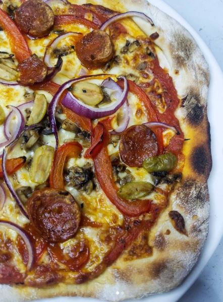 Mouthwatering homemade pizza with a stone oven texture – perfect for a night in!