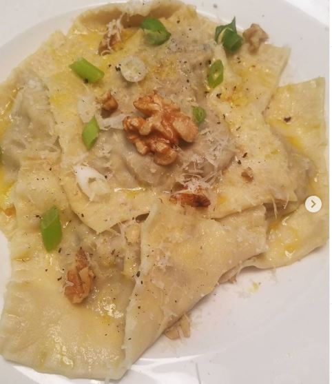 Mushroom and walnut ravioli